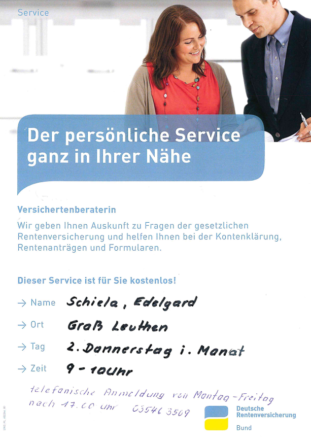 Geänderte Zeiten für die Beratung der Rentenversicherung
